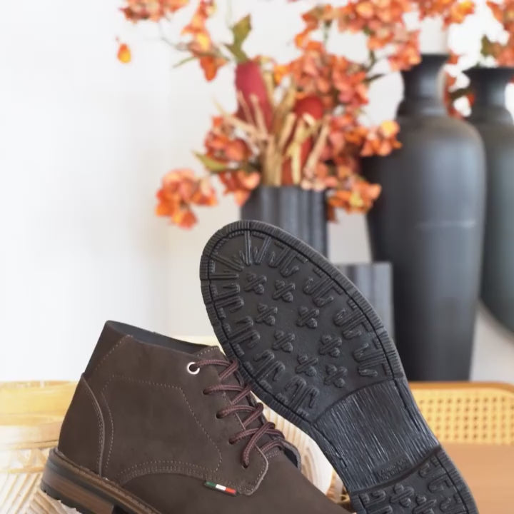 Bota Coturno Couro Legitimo Nobuk Café Carbon