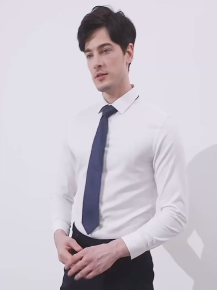 - Tecido premium que evita amassados, mantendo você sempre impecável;